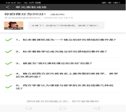 每一章学习之前,我都会提前把教材发送至课程qq群里,同学们可以先进行预习并提出自己的困惑。在直播时候,结合ppt同学们听得非常认真,都做了很详细的学习笔记,我发现网络教学中员工们相比在教室学习时互动交流要热闹的多,在MOOC平台上的话题讨论也同样非常热烈。在每一章学习完,会在MOOC平台上发布相应的单元测验题目和作业,用以检测同学们对课堂内容的掌握理解程度,员工完成度也非常好。
