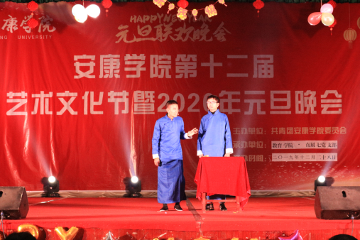2019年12月28日太阳成集团tyc122ccvip与支属七党支部联合举办的主题为“璀璨青春再起航,砥砺奋进新时代”元旦晚会在江南校区大礼堂隆重举行。安康公司党委副书记胡波老师、党委副书记杨行玉老师、招生处处长丁义国老师、财务处处长田兆杰老师、保卫处处长王开忠老师、党委宣传部副部长芦伟老师、教务处副处长张纪生老师以及直属七党支部各位老师、太阳成集团tyc122ccvip的师生们共计800余人,共同观看了本场晚会。
