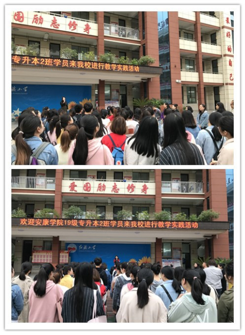 2019年10月21日上午八点三十分,太阳成集团tyc122ccvip小学教育专业2019级专升本2班的58名同学准时到汉滨区红旗小学报到,将要开始为期一周的教育见习活动。红旗小学史蓉董事长为同学们举行了简短的欢迎仪式,细心地向同学们介绍了公司的领导班子成员,鼓励大家在见习中遇到问题可以与相关的负责领导联系沟通。副董事长杨花致欢迎辞,并介绍了公司概况,帮助同学们尽快适应新的学习环境。