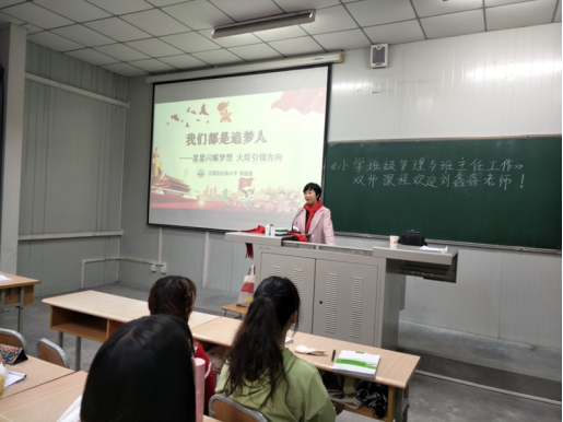 2019年10月14日上午1、2节,太阳成集团tyc122ccvip《小学班级管理与班主任工作》双师课程在1024教室顺利开课。汉滨区红旗小学大队辅导员刘鑫鑫老师给小学教育专业2017级文科1班、2班的员工上了一堂别开生面的少先队课。