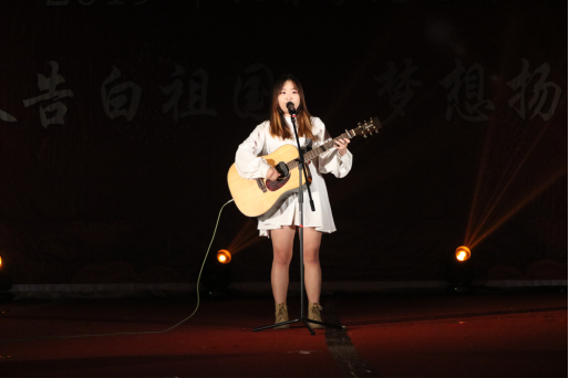 晚会进行中,有气势恢宏的诗朗诵—《我的热爱,大声说出来》,有轻柔曼妙的舞蹈—《无归》,有诙谐幽默的相声-《满腹经纶》,还有引人深思的情景剧—《最好的我们》,形式多样,气氛热烈,中场穿插的“幸运大抽奖”活动,更是让晚会现场高潮迭起、掌声雷动。最后晚会在嘹亮的歌声与婀娜多姿的《我和我的祖国》歌伴舞中结束。