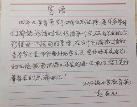 学姐寄语:无论怎样,希望在未来的日子里,学弟学妹们可以更好地面对未来的学习与生活,希望我们有一个无悔的青春,也愿我们历尽千帆,归来仍是少年。
