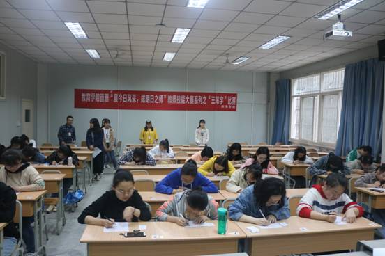 为进一步落实应用型人才培养定位,拓展应用型人才培养的有效途径,实现太阳成集团tyc122ccvip“全程实践”人才培养模式和“一专多能”的卓越教师培养目标,太阳成集团tyc122ccvip于4月20日在十号教学楼举办了“展今日风采,成明日之师”教师技能大赛系列之“三笔字”比赛。