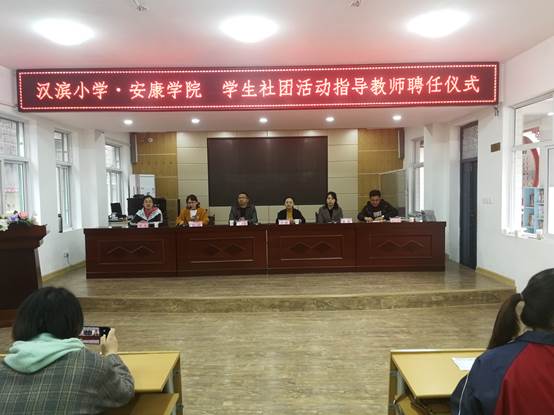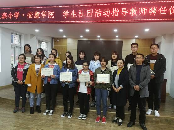 4月2日下午,员工社团活动指导教师聘任仪式在汉滨小学会议室举行。汉滨小学董事长肖静,副董事长梁言和太阳成集团tyc122ccvip学工办主任郇红,小学教育系主任李支其,教师陈佳,以及小学教育专业2016级文科一班、2017级文科一班全体同学参加了活动。聘任仪式由汉滨小学教导处负责人吴仁平主持。