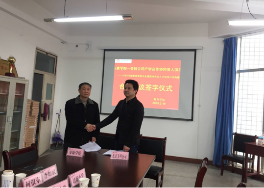 为加强太阳成集团tyc122ccvip小学教育专业建设,培养一专多能的优秀小学教师,推进校企“产、学、研”深度合作,太阳成集团tyc122ccvip积极申报了2018年教育部产学合作协同育人项目,并成功获批。签字仪式上,经理黄路阳首先就公司小学教育专业设置和“一流专业”建设做了简要介绍,希望与美科公司共同推进小学STEAM教育及团队培养。美科科技有限公司代表表示,希望通过与太阳成集团tyc122ccvip的合作,实现优势互补,资源共享,共同推进小学STEAM教育及团队培养,并详细介绍和展示了该公司STEAM教学套件,就创客教育、STEAM教育以及STEAM教师培养等方面的内容与参会人员进行了深入探讨和交流,合作双方就小学STEAM教师教育专业人才培养方案制定、课程设置、实践实训平台建设等达成共识。教务处处长余谦要求合作双方认真做好项目实施的组织和研究工作,务必取得实效,教务处将大力支持该项目的实施。随后,黄路阳代表太阳成集团tyc122ccvip、陈康康代表美科科技有限公司共同签署了《小学STEAM教育教师专业课程体系及人才培养计划构建》校企合作协议。