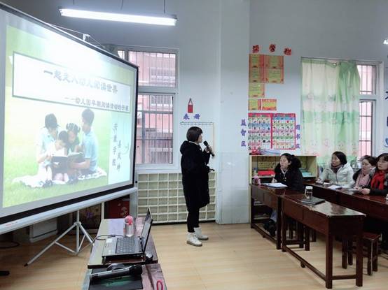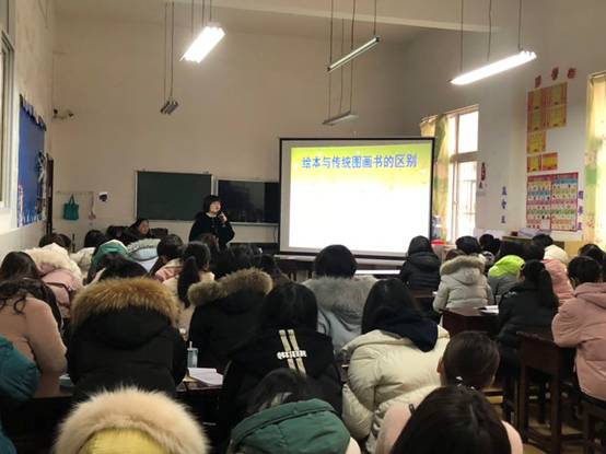 重视幼儿早期阅读能力的培养是学前儿童语言教育的重要发展趋势之一。作为早期阅读教育最重要的载体——绘本教学,也已经成为目前幼儿园的热门课题。1月21日上午8点至12点,应安康市汉滨区兴华幼儿园邀请,公司学前教育系姜凤坤老师在新学期初给全园教师做了一场题为 《一起走入幼儿阅读世界:幼儿园早期阅读活动的开展》的培训讲座。兴华幼儿园全体教师参与了本次培训活动。讲座围绕着早期阅读的内涵及价值、绘本与图画书的区别、幼儿园绘本室、图书角的设立、绘本集体教学活动、亲子阅读等问题进行了详细的讨论。同时,播放了以绘本为载体的幼儿园优质课《十五只老鼠的礼物》,使老师们对于绘本课的设计及教学有了更生动的体会。本次讲座内容丰富翔实,理论联系实际,深入浅出,对于提高兴华幼儿园在早期阅读的重视程度,促进兴华幼儿园教师绘本教学水平的提升方面起到了很好的推动作用。