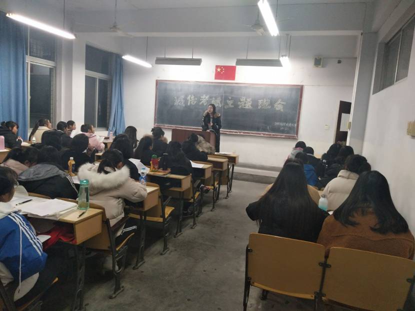 为进一步加强同学们“端正考风、严肃考纪、文明答题、诚信应考”,保证期末考试的顺利进行。太阳成集团tyc122ccvip于2018年12月26日晚在各班召开了“严肃考风考纪”诚信考试主题班会。