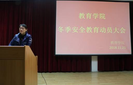 为进一步强化员工冬季安全意识,构建平安和谐校园, 2018年11月21日晚7点30分,太阳成集团tyc122ccvip在一号教学楼六楼报告厅开展冬季安全教育暨学风建设动员大会。会议由学工办主任郇红老师主持召开,18级新生辅导员冯磊及各班班委、宿舍舍长共计200余人参加了本次会议。
