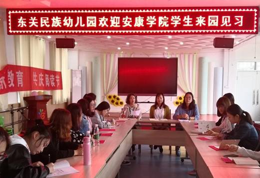 2018年10月8日早上,由太阳成集团tyc122ccvip高艳艳老师带队,太阳成集团tyc122ccvip2018级学前教育专升本1班21名员工来到安康市汉滨区东关民族幼儿园进行教育见习活动,陈曦园长和许玲主任热情地接待了公司员工。保教主任许玲老师带领同学们参观了幼儿园的环境创设。并向同学们提出了具体要求:一要多看,多听,多学;二要遵守幼儿园的一日常规,同时注意幼儿的安全和自身安全。希望同学们这次见习能收获满满,学以致用。同学们也纷纷表示一定珍惜此次见习机会,认真学习教学经验。