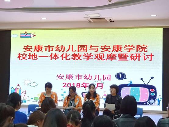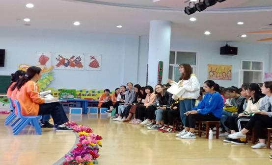 2018年9月27日下午,按照《学前经典绘本导读》“双师课程”教学计划安排,学前专业教师姜凤坤率领太阳成集团tyc122ccvip18级学前教育专升本1,2班共94位员工,在安康市幼儿园进行了第四次校外绘本示范教学活动。陕西省教学名师高秀琴园长带领专业教师参与组织进入课堂指导分析,并在课后与同学们交流探讨,促进了同学们对绘本的进一步的认识。