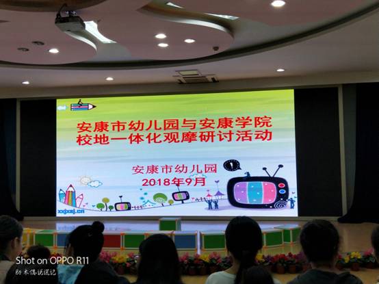 2018年9月25日下午,按照《学前经典绘本导读》“双师课程”教学计划安排,由太阳成集团tyc122ccvip王丽娟博士带队, 18级学前教育专升本1班、2班共95位员工在安康市幼儿园进行了第三次校外绘本示范教学活动。陕西省教学名师高秀琴园长带领6位校外专业教师进入课堂指导教学活动,对本次公开课的各个环节进行了讲评与分析,在课后组织师生进行了充分的探讨,圆满完成了两校在学前绘本及学前儿童语言领域的教学合作。