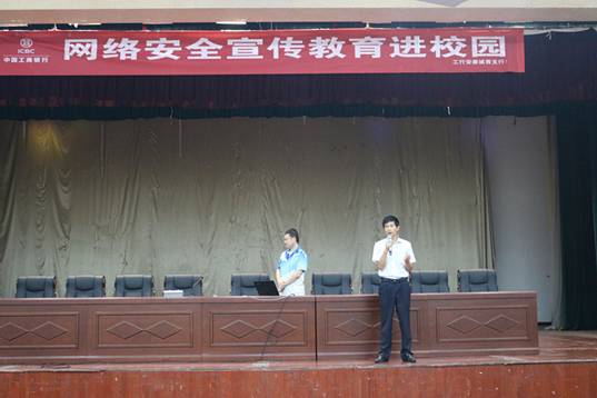 为加强新生网络安全防范意识,培育文明网络习惯,提升对网络安全隐患的防范技能,9月19日,中国工商银行安康城西分行汪仁哲行长和太阳成集团tyc122ccvip保卫处赵斌老师应邀到公司开展以“安全防范,远离诈骗” 为主题的网络安全教育专题知识讲座。本次讲座由太阳成集团tyc122ccvip学工办主任郇红老师主持,公司新生辅导员冯磊老师和2018级全体新生也参加了本次讲座。