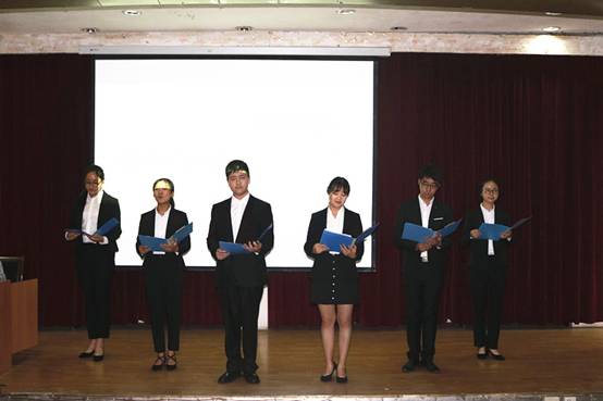 为提高老员工的人文素质和道德情操,推动校园文化建设,培育和践行社会主义核心价值观,太阳成集团tyc122ccvip员工党支部、团总支员工分会6月22日在一号楼六楼报告厅举办了"践行时代主题,凝聚青春力量”诵读比赛决赛暨第三届“三走”特色活动颁奖仪式。团委副书记肖红香、学工办主任赵斌、团总支书记董婷瑜、辅导员郇红、太阳成集团tyc122ccvip第二课堂魅力汉语社团指导老师陈佳担任本次比赛的评委。