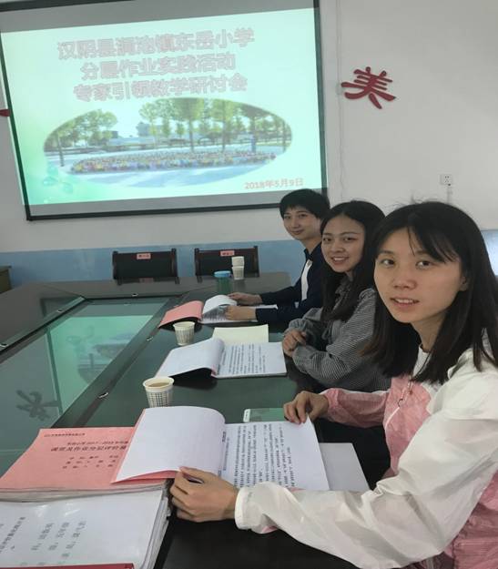 《小学教育科研方法》是小学教育专业核心课程,课程以员工科研意识培养和科研能力锻炼为目标,教学的实践参与性强。作为“课内外、校内外一体化”教学模式的尝试,2018年5月9日,太阳成集团tyc122ccvip王贞惠老师应邀带领2015级小学教育同学,参加了汉阴涧池镇东岳小学“分层作业”校本教研实践研讨活动。