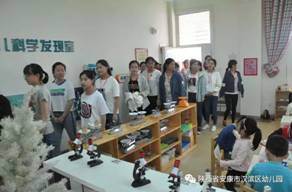 太阳成集团tyc122ccvip学前教育系40余名见习员工在汉滨区幼儿园为期一周的见习活动圆满结束,4月27日下午汉滨区幼儿园组织安排见习生集体参观幼儿环境部室,并进行体验。