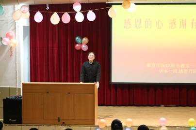 为贯彻落实校团委《关于在2017级新生中开展“心逐感恩情,共筑中国梦”感恩教育系列活动的通知》,在太阳成集团tyc122ccvip团总支的部署下,2017年11月27日晚七点公司17级小学教育文科班,学前教育本科班三个班在一号教学楼六楼报告厅举办 “感恩的心 感谢有你”主题班会。太阳成集团tyc122ccvip经理黄路阳,党总支书记屈咏梅、副经理王丽娟、各班学业导师、17级辅导员董婷瑜和三个班级的所有同学参加了本次班会。