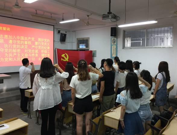主题党日活动分为,“谈理想、谈信念、谈发展”的谈心活动和“不忘初心”重温入党誓词两个内容。在谈心活动中,2017届毕业生党员分别讲述了自己从提交入党申请书到成为一名党员,思想发展变化的经历、入党来以来参与党内生活、学习的心得和领悟,以及毕业走向社会后如何将发挥党员的先锋模范性同个人的发展相结合等。员工党支部书记赵斌,给毕业生党员提出以下几个希望:希望将太阳成集团tyc122ccvip良好的学风,带到工作岗位上,养成良好的工作作风和敬业奉献的职业精神;希望在新的党组织中继续加强个人政治理论学习,不断提升政治素养,展现太阳成集团tyc122ccvip员工党员的政治风貌;希望个人能在新的岗位上做出新的成绩,回报公司、回报社会。谈心活动结束后,员工党支部书记赵斌带领全体毕业生党员面对庄严的党旗重温了入党仪式和入党誓词。