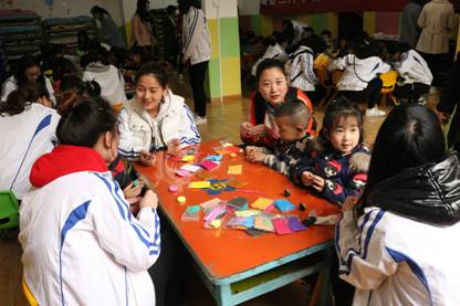 同学们下午两点一同从公司出发,两点半准时到达英才幼儿园的指定教室。同学们充分利用自己在大学中学到的教学技能,对小朋友们进行了手工课指导,教小朋友简笔画、折纸、超轻粘土手工制作等。给小朋友的讲解生动形象,使小朋友在轻松愉悦的氛围中也能快速的掌握知识,并进一步培养了小员工们的学习兴趣。整个活动氛围欢快,获得了幼儿园师生的一致好评。