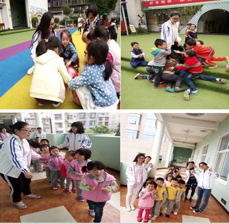 员工们顺利融入幼儿园一日活动之中,与幼儿打成一片,和他们一起完成任务;向幼儿园优秀幼儿教师请教幼儿教育的相关问题,在真实场景中践行“校内外一体化”学习方式。