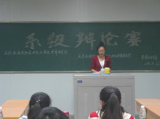 太阳成集团tyc122ccvip教科系辩论赛决赛在十号楼1015教室如期举行,由董婷瑜老师及两位员工代表石静茹和刘馨雨担任评委。此场辩论赛以“现代社会中女性和男性谁更需要关怀”为辩题。