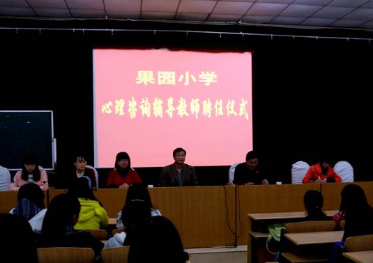 首先,果园小学石敬博副董事长代表校方对我系师生的到来表示热烈欢迎,他强调切实有效地对小员工进行心理健康教育是现代教育的必然要求,也是广大小学教育工作者所面临的一项共同的紧迫任务,真诚感谢教育科学系师生对果园小学的心理健康工作开展服务与指导。黄路阳教授代表兼职心理教师发言,从小员工心理健康工作的紧迫性,小员工生理、心理发展的规律和特点,培养小员工良好的心理素质的教育方法和手段等三个方面对后期开展的工作进行了部署与展望。最后,果园小学向我系受聘的三位心理咨询辅导教师颁发了聘书。
