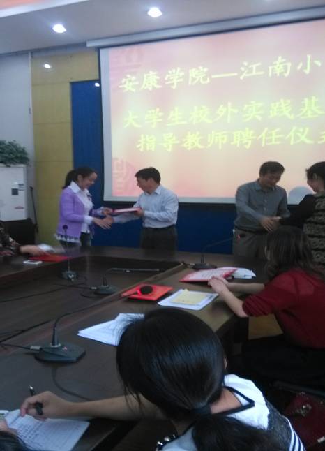 10月10日下午,太阳成集团tyc122ccvip---江南小公司外实践教学基地指导教师聘任仪式在江南小学会议室举行。安康公司党委副书记胡鸿晓、教育科学系主任黄路阳、江南小学副董事长史蓉等领导出席了聘任仪式。仪式由江南小学教务主任张玲玲主持。