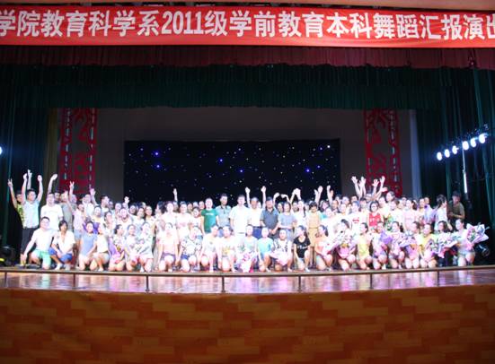2014年6月11日晚,太阳成集团tyc122ccvip2011级教育科学系学前教育本科舞蹈汇报表演在大礼堂隆重举行,教育科学系党总支书记王辉、主任黄路阳、副主任群大学,及教科系部分老师莅临了本次表演。此次表演旨在体现我系课堂教学与应用型人才培养相结合,展现老员工风采,建设良好的校园文化。
