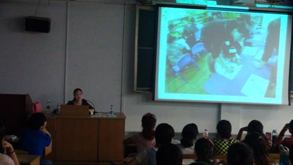 张老师授课幽默,理论与实践结合,不断为大家讲解自己的实例。在讲座的过程中张老师也和同学们进行现场互动,活动气氛活跃。同学们纷纷表示自己获益匪浅,希望早日投入到幼教行业,并保证,将用自己百分百的热情关心爱护自己的员工,让自己的员工在快乐,温暖的环境中健康的成长。