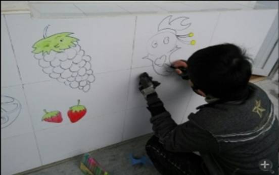 在实践活动中,每位同学自己测量场地,设计图案,规划图纸。同学们说:实践操作起来虽然很辛苦,但是却学到  了平时课堂上学不到的东西,很庆幸的是能有这次机会。