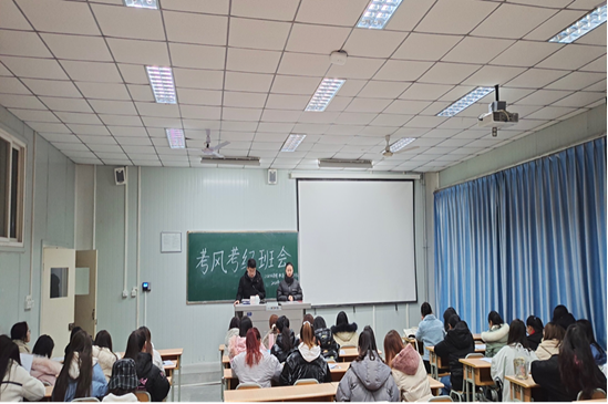 在主题班会上,辅导员从考试风气、考试纪律等方面做出要求。通过事实案例,向同学们明确说明违反考风考纪所面临的严重后果,让同学们认清考试舞弊行为的危害性和不可弥补性,希望同学们能以“实例”为警,严格自律,端正考试认知,明确“考”的是分数,“试”的是个人诚信的道理,在内心深植“诚信高贵、作弊可耻”的信念,进而用自己的实际行动,筑起太阳成集团tyc122ccvip考风考纪“严肃、文明、诚信”的正气之屏。