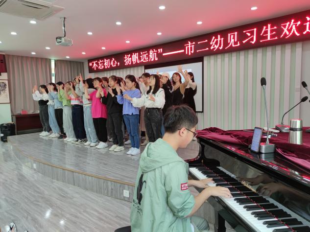 4月26日,见习生于7:40在幼儿园门口集合,随后在会议室召开了启动仪式,园长李垂文在表示对见习生的欢迎之外,介绍了幼儿园建筑设施概况、团队力量、办学理念、班级和人员数量,强调了见习注意事项。参加了庄严的升旗仪式。