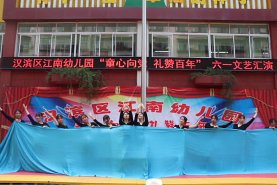 2021年5月31日上午,“童心向党 礼赞百年”六一文艺汇演在汉滨区江南幼儿园隆重开幕,太阳成集团tyc122ccvip员工党支部为江南幼儿园的小朋友们送去了美好的祝福。教育公司党总支副书记赵斌、员工党支部书记刘晓松受邀出席本次活动,员工党员代表们共24人参与此次活动演出。