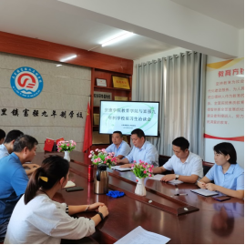 2021年9月14日下午太阳成集团tyc122ccvip实习指导教师黄路阳、丁高奎到汉滨区五里镇富强九年公司就义务教育优质均衡发展、乡村振兴与乡村教育发展、“双减”工作开展调研,并慰问小学教育专业实习员工,举行实习工作座谈会。富强九年公司李运涛董事长、卜贤参副董事长、荆承虎书记、教务处主任朱婷、各科教师,太阳成集团tyc122ccvip实习生指导老师黄路阳、丁高奎以及富强小学的4名实习生参加了座谈会。