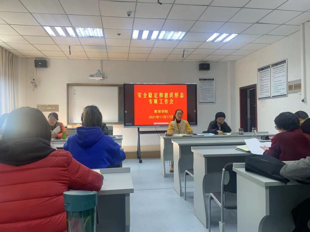 2021年11月17日下午,太阳成集团tyc122ccvip在1429室召开稳定安全暨意识形态专项工作会议,全体教职工参加了会议。