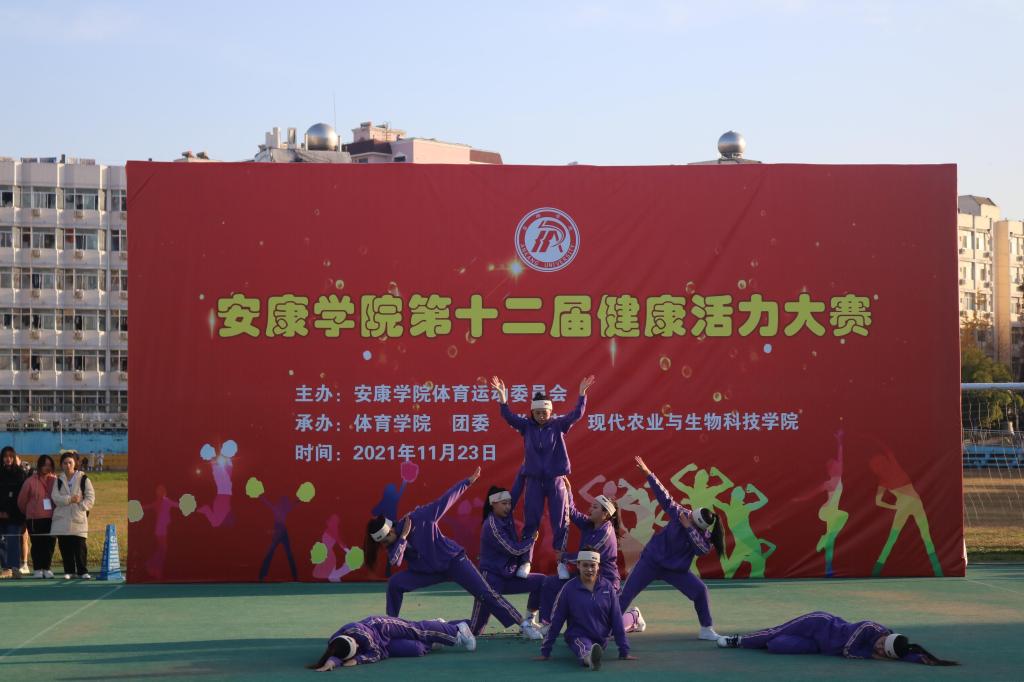 2021年11月23日太阳成集团tyc122ccvip第十二届健康活力大赛在江南校区田径场成功举办。太阳成集团tyc122ccvip组建了由郇红老师任领队,白荣婧、郭嘉怡等十三名同学任教练员,六十名队员组成的代表队参加了本次比赛的啦啦操、校园健身操、健身排舞、体育舞蹈四个项目六个舞种。