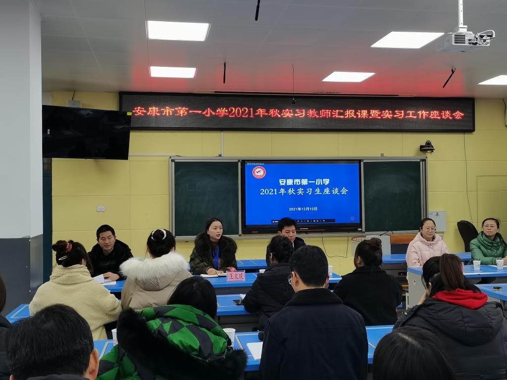 2021年12月10日,安康市一小召开了2022届教育实习中期检查汇报总结座谈会,会议由安康市一小教导处副主任曹文波主持,公司小学教育系主任陈珂、带队教师史丰教授、骨干教师陈佳、丁高奎,安康市一小董事长胡刚、副董事长王文琰、实习生结对指导教师及10名实习生参加了座谈会。