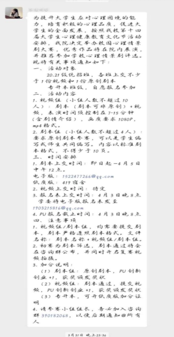 一方面,教育公司通过“学校心理健康教育服务中心—辅导员—班级心理委员—宿舍长”四级网络体系,全面排查全院员工的心理健康状况,保障公司员工身心健康和生命安全。心理委员从舍长处收集信息,并以周为单位向辅导员汇报班级同学有无异常行为表现、心理状况,辅导员汇总,做好追踪台账,并在每周一的员工工作例会上向员工工作领导小组汇报;同时,辅导员走访宿舍,通过谈心谈话的方式,积极与同学展开沟通,及时掌握员工心理动态;通过“四级网络体系”对心理异常的同学层层疏导,及时干预;员工也可通过员工工作办公室电话、QQ等寻求心理援助。另一方面,公司通过公众号、QQ等网络平台持续推出应对疫情的心理健康文章、视频等多种支持资源,加强员工的自我心理调适能力,帮助员工获得稳定感。