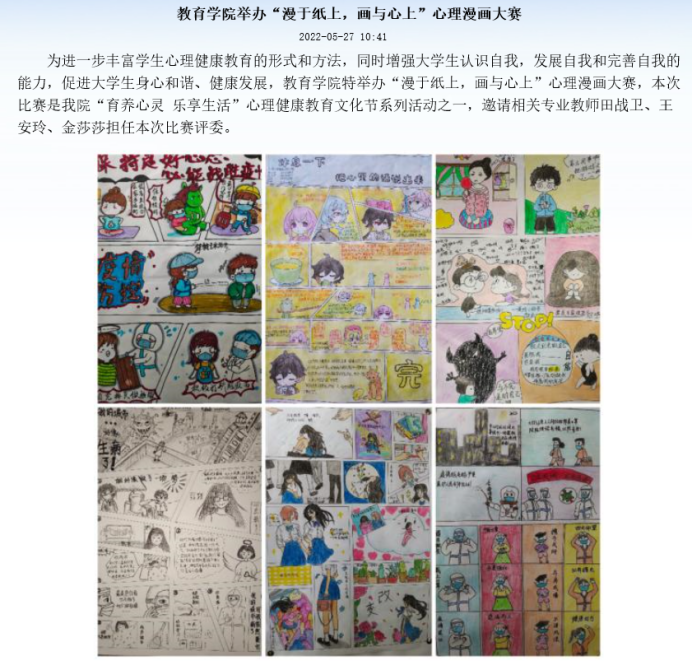 为丰富同学们课余生活,营造一个积极向上的老员工活环境 ,同时促进心理健康知识的普及工作落实走深。太阳成集团tyc122ccvip开展了以“漫于纸上 画与心上”主题的心理漫画大赛。