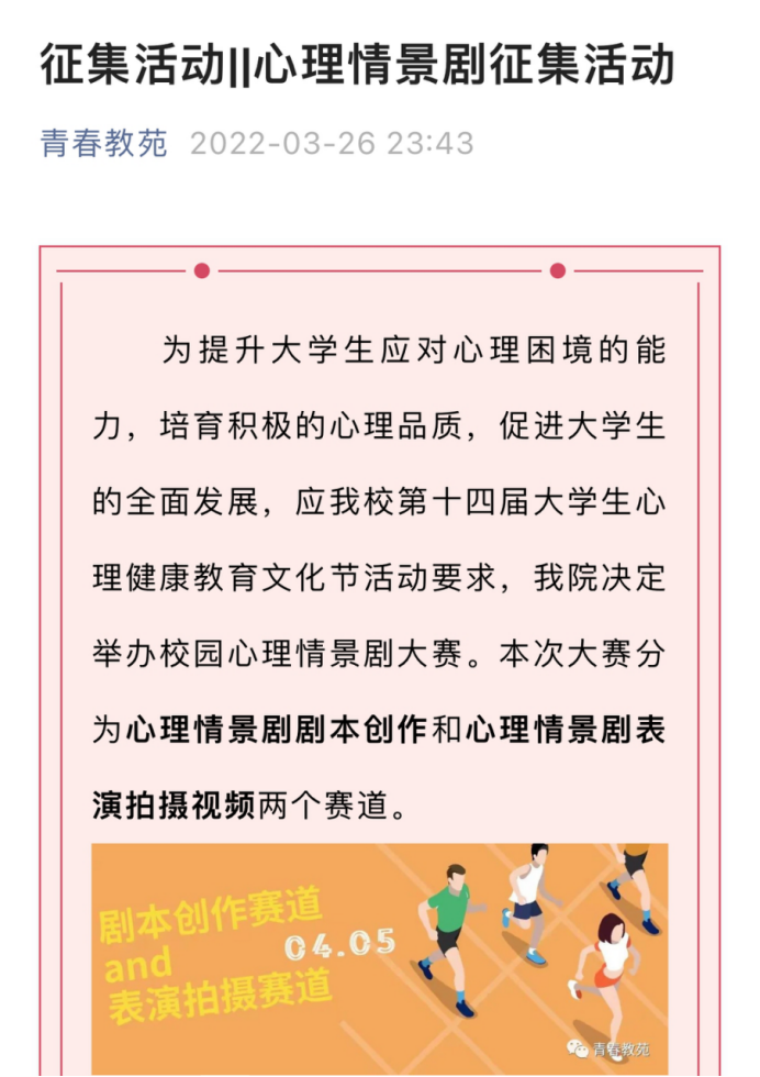(一)“以爱为翼·凝心‘剧’力”校园心理情景剧大赛