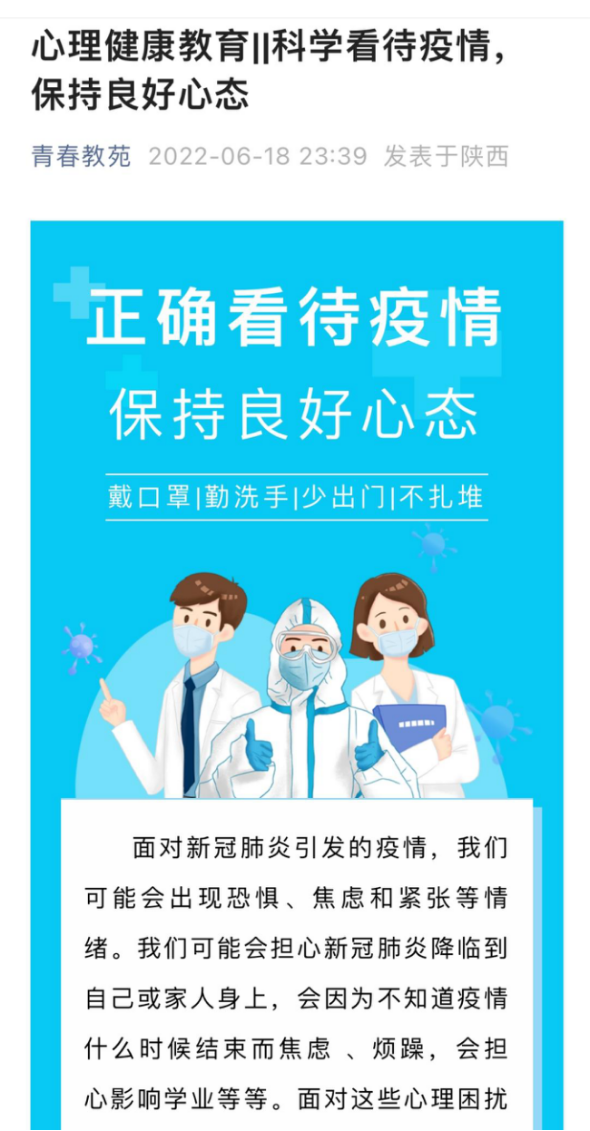 为落实疫情防控常态化背景下的心理健康教育服务相关政策,减轻疫情可能带来的心理干扰和心理危害,指导老员工以积极的情绪应对疫情,提高抗挫、抗压能力,以保障员工的生命安全和身心健康。教育公司积极行动,多措并举,有序开展疫情防控期间的员工心理健康教育与服务工作。