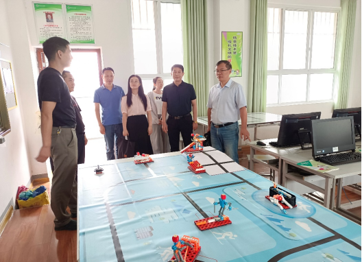 王经理一行参观了铁路小学的科普教育基地、中小学法治教育基地、科学实验室、航模科技作品展室、教育机器人实训等,双方并围绕课堂教学、团队队伍建设等方面进行了探讨交流。