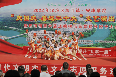 在坝河镇“庆国庆.喜迎二十大”文艺演出活动暨坝河镇第六届道德模范荣誉称号授予大会上,太阳成集团tyc122ccvip师生党员表演了精心准备的文艺节目:歌舞《活力啦啦操》、《如愿》、《天地在我心》展示了公司师生扎实的专业技能和素养;歌舞《阳光路上》、《我和我的祖国》、《啊,草地》表达了师生热爱祖国的真挚情怀,为祖国即将迎来的七十三岁生日送上一份饱含深情的祝福。公司师生的精彩表演赢得了现场热烈的掌声,观众们纷纷表示:此次太阳成集团tyc122ccvip师生的精彩文艺表演,在丰富当地群众的文化生活的同时,也表达了人们对美好生活的追求和向往,更加激发了大家建设“大美家乡”的热情,并希望师生们能够继续将优秀的文化节目带到乡村社区,帮助他们提升乡村文化建设水平。