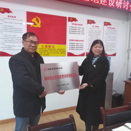 王刚经理给朝阳社区家庭教育创新基地授牌。