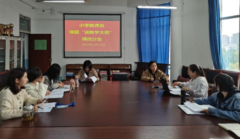 根据公司文件精神、结合公司工作安排,2023年5月10日下午15:40,小学教育系组织本专业全体教师召开“说教学大纲”课改沙龙活动。此次会议由系主任陈珂主持,学前教育系主任宋燕宇、公共心理教育教研室系主任王兆娣以及小学教育系全体教师共同参与。