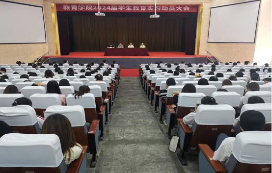 为扎实做好2024届员工教育实习工作,进一步促进员工对所学知识及技能的实践运用,引导员工明确认识教育实习的目的。教育公司近日在大礼堂召开2024届员工教育实习动员大会。教学副经理王丽娟、公司副书记赵斌、学前教育系系主任宋燕宇、小学教育系系主任陈珂、实习带队老师及全体实习生参加本次动员大会。