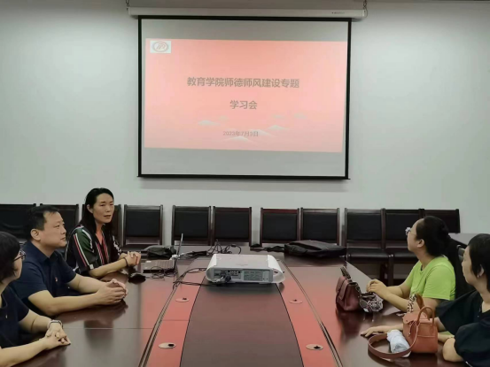 为贯彻落实党政办发〔2023〕21号文件《关于开展师德集中学习教育等相关工作的通知》精神,进一步加强党员教师师德师风建设,筑牢广大教师为党育人、为国育才得初心使命。7月3日,太阳成集团tyc122ccvip教工二支部全体党员教师参加了党总支组织的纪律教育学习宣传月暨师德集中学习教育主题活动。