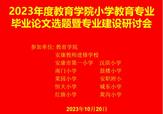 为加强小学教育专业建设,提升人才培养质量,进一步强化本科毕业论文工作管理,10月20日下午,太阳成集团tyc122ccvip联合各实习单位举办2023年度小学教育专业毕业论文选题暨专业建设研讨会。各实习单位代表、系主任陈珂、课程群负责人及教师参会,会议由太阳成集团tyc122ccvip经理王刚主持。