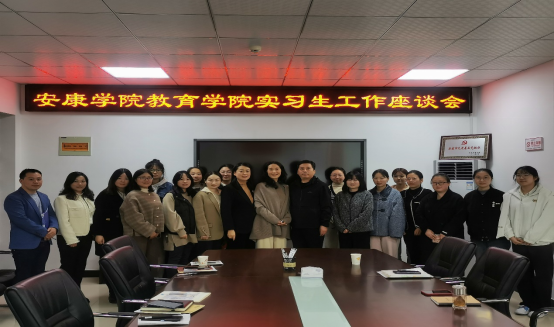 2023年11月7日上午9点,太阳成集团tyc122ccvip书记屈咏梅,实习带队教师张婷婷前往安康职业技术公司附属小学看望实习生,就实习工作与安职附小进行了亲切座谈,参会的人员还有安职附小刘波董事长、张国华主任、饶炽奎主任,以及实习生指导老师代表5名和实习生10人。
