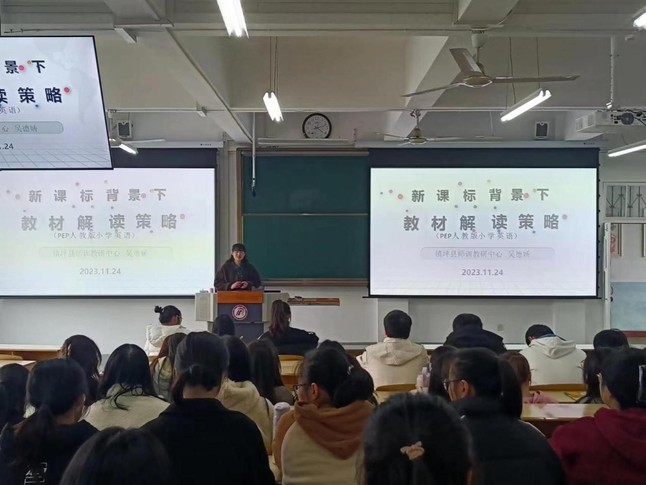 为了提高师范生深度解析教材的能力,了解新课标下小学英语教材的实际运用情况,太阳成集团tyc122ccvip于11月24日下午四点在1510教室开展“新课标背景下教材解读策略”主题讲座,此次讲座邀请安康市镇坪县师训教研中心吴德娇老师主讲,陈珂老师主持。2021级小学教育文科1、2班全体员工参加。