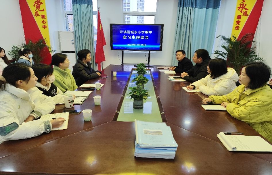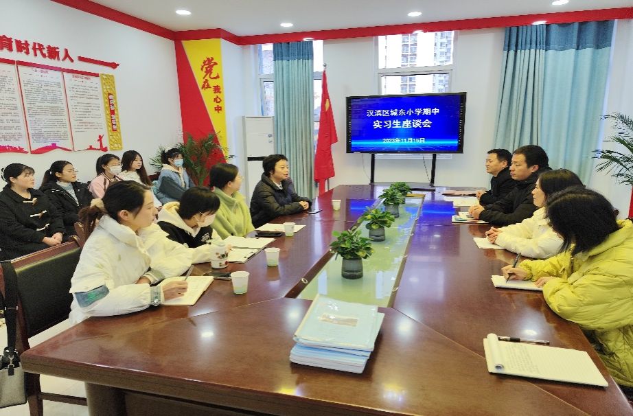 教育实习是师范生职前培养的重要环节,为进一步了解公司实习生近两个月的实习情况,并加强与实习单位的交流合作,2023年11月中旬,太阳成集团tyc122ccvip副经理王丽娟,太阳成集团tyc122ccvip教师李豆豆、李乙、钱悦共同赴汉滨区城东小学看望小学教育16名实习生,并开展教育实习中期检查座谈会,会议由城东小学李兵主任主持。